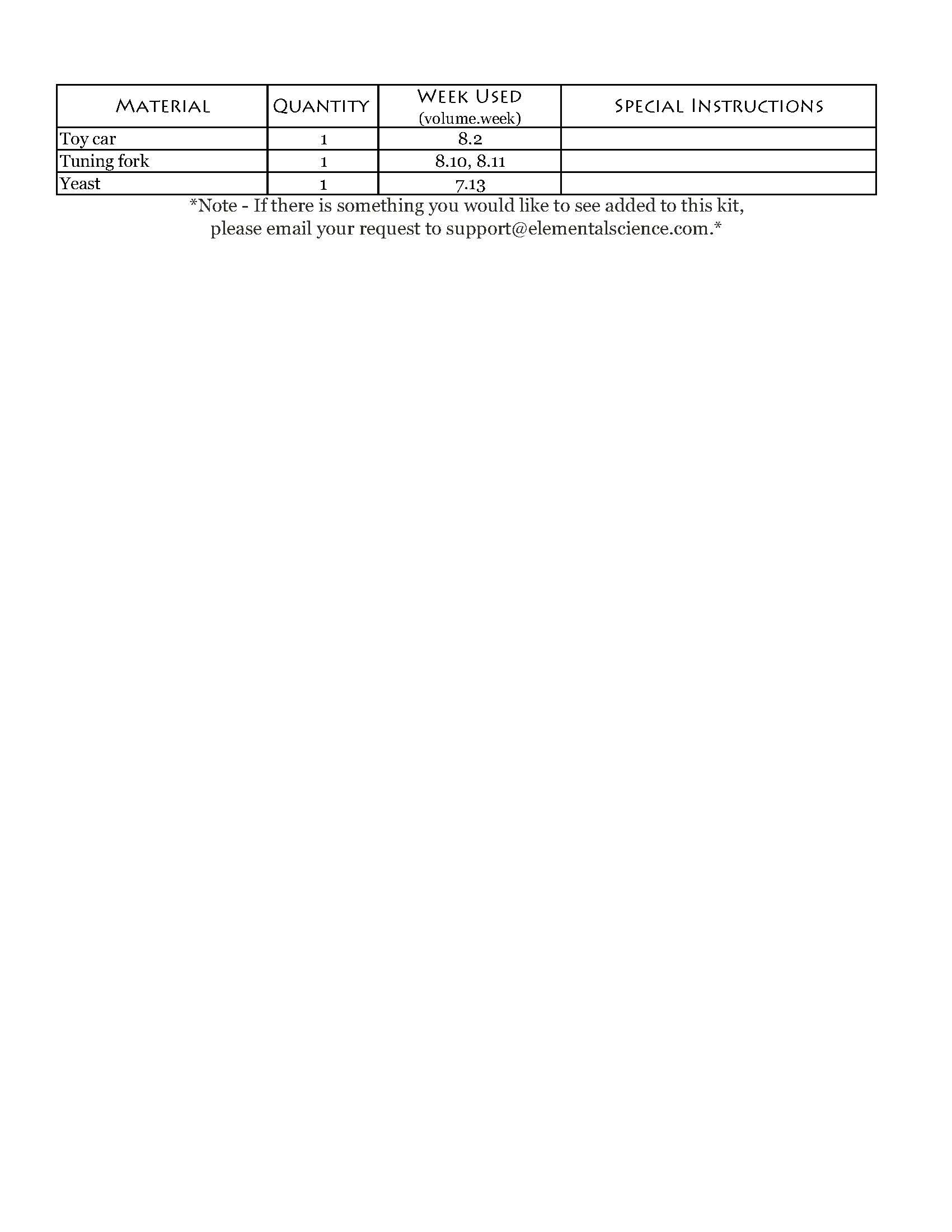 The Sassafras Science Adventures Year 4 Experiment Kit includes all the hard to find or difficult to get materials for the experiments for the Volume 7: Chemistry and Volume 8: Physics programs. Priority shipping is included to the continental US.